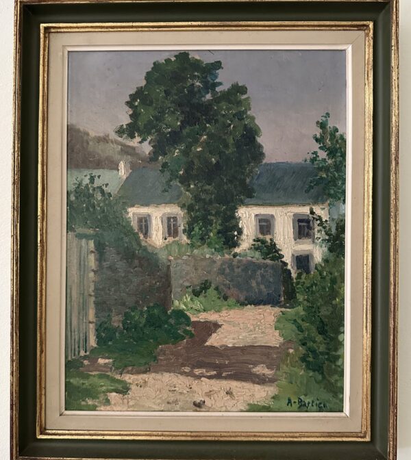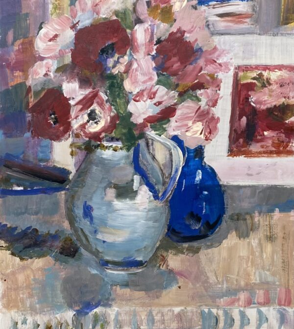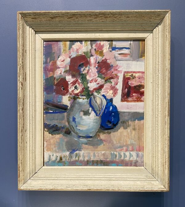 Mixed media – Acrylic, oil and cold wax framed in double trench frame painted in Farrow and Ball Pointing.