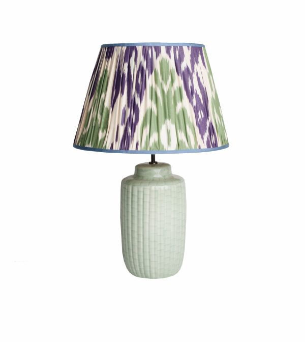 Blue and White Happy Jar Lamp base made exclusively for Alexander Thomas with antique brass fittings and gold flex. Suit an 14 inch or 16 inch lamp shade.