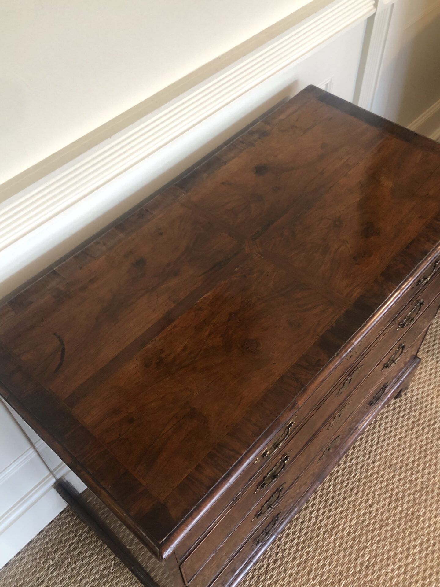 A great quality George I Burr Walnut chest with wonderful colour and patination standing on bracket feet. English circa 1720.